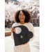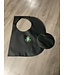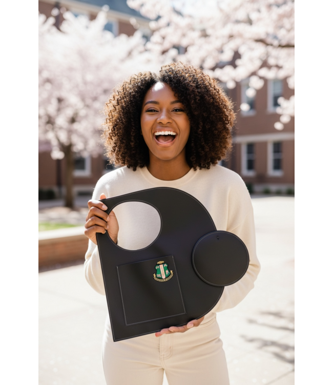 LAST ONE LEFT - AKA Black Leather D bag adorned with shield. White stitching.