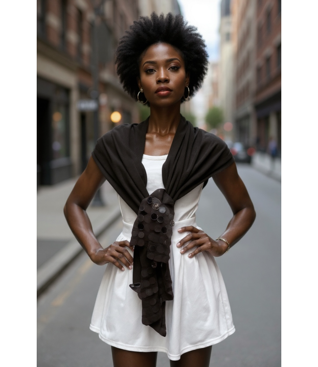 W Dark Brown Sequin Scarf