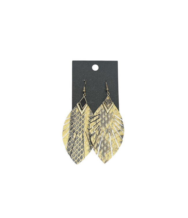 Review W Genuine Leather Handmade Earrings: Beige Snakeskin(SP26)