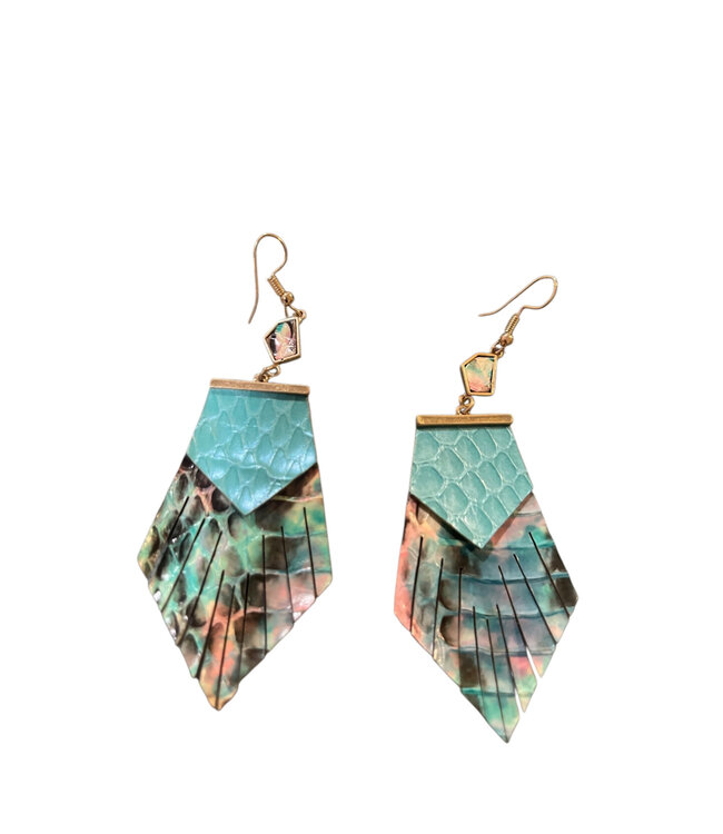 W Genuine Leather Handmade Earrings: Blue Snakeskin(SP26)
