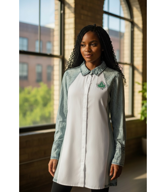 SALE! AKA Washed Denim/White Long Button Down (M,L) (SP26)