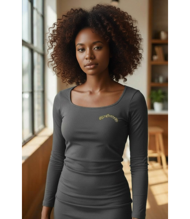 ΣΓΡ SALE! SGR Sigma Gamma Rho Stretch Charcoal Grey ¾” Sleeve Fitted Top (M/L) (SP26)