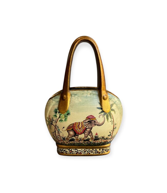 Beautiful handprinted porcelain purse with safari elephant. For decorative use.